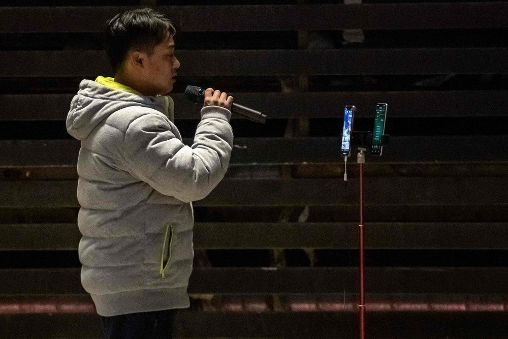 Một hình ảnh khác được SCMP đăng tải cho thấy Trương Thượng Vũ đang hát trên đường phố để kiếm sống: