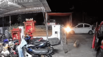 Đoạn clip do camera an ninh của một nhà dân cho thấy khi đó, một người đàn ông cởi trần đang đứng bên cạnh một chiếc xe tải đỗ trong sân nhà thì thấy một chiếc xe trắng đi qua trước cổng.