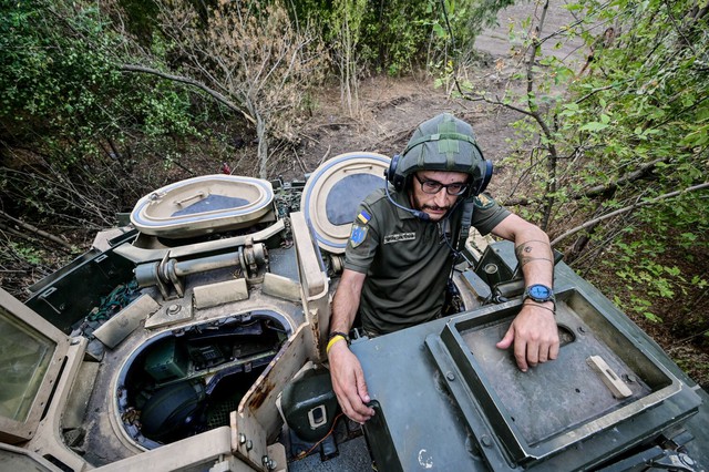 Hình ảnh chi tiết về xe bọc thép Bradley do Lữ đoàn Cơ giới số 47 của Ukraine tại khu vực Zaporizhzhia, phía đông nam Ukraine.