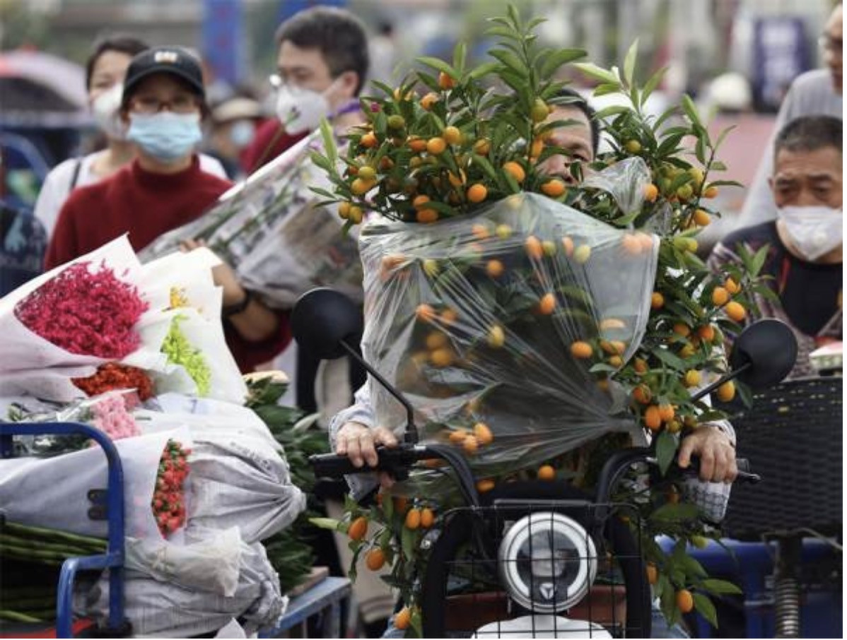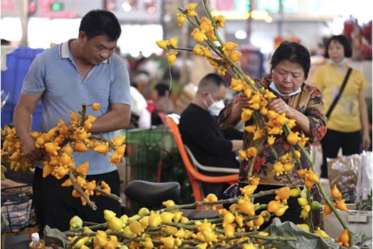 Chợ hoa Lĩnh Nam ở quận Liwan, thành phố Quảng Châu, Trung Quốc nhộn nhịp với nhiều người đi mua hoa về trang hoàng nhà cửa để đón Tết.