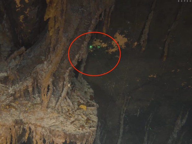 Đèn xanh từ hệ thống chia tỷ lệ laze trên Chuyến thám hiểm Titanic năm 2022