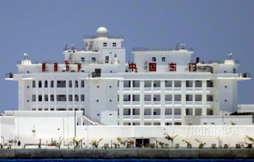 Trung Quốc gần như xây dựng hoàn chỉnh công trinh trái phép - tòa nhà 9 tầng - ở bãi đá Huy Gơ của Việt Nam.