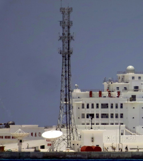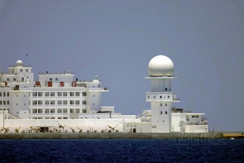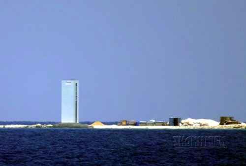 Tòa nhà chính 9 tầng Trung Quốc xây dựng trái phép trên bãi đá Huy Gơ của Việt Nam |