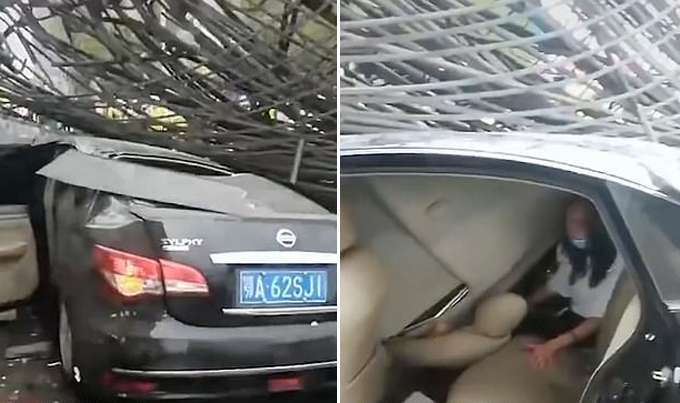 9h sáng 9/6, trong lúc nâng một khối thép nặng ở công trường xây dựng trung tâm thương mại Dương Tử, thành phố Vũ Hán, một chiếc cần cẩu lớn đột nhiên bị đổ xuống con đường bên cạnh. Chiếc cần cẩu sập trúng hai xe hơi đỗ bên đường khiến hai người bị thương.
