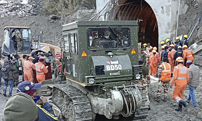 Hàng trăm nhân viên cứu hộ, cùng các trực thăng trang bị camera độ phân giải cao và chó nghiệp vụ, hôm nay tập trung vào việc xác định vị trí và giải cứu 34 công nhân mắc kẹt trong một hệ thống đường hầm thuộc dự án thủy điện Dhauli Ganga, sau vụ vỡ sông băng Nanda Devi trên dãy Himalaya, thuộc khu vực Tapovan, bang Uttarakhand, phía bắc Ấn Độ, hôm 7/2.