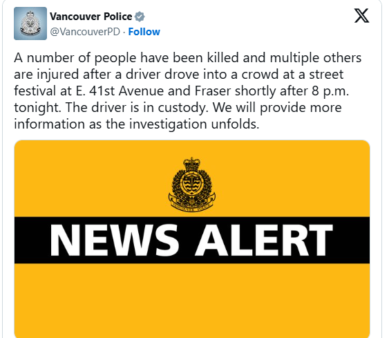Nhà chức trách TP Vancouver xác nhận nhiều người thiệt mạng và một số người bị thương trong vụ tai nạn này.
