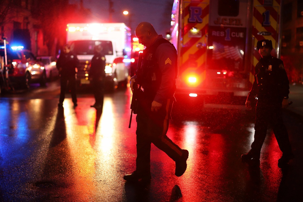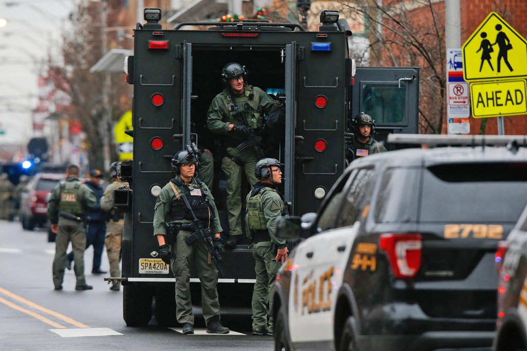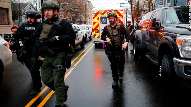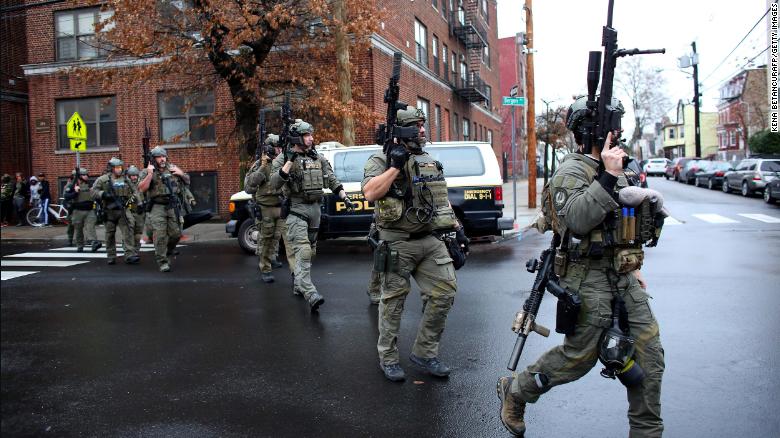 Cảnh tượng hỗn loạn xảy ra trên đường phố Jersey City. Tiếng súng và còi hú của lực lượng đặc nhiệm vang lên chói tai. Tiếng đấu súng liên tục được nghe thấy trong ít nhất 20 giây và kéo dài đến 14h cùng ngày. Ít nhất 3 xe bọc thép và 1 máy bay trực thăng đã được huy động đến hiện trường. Vụ đấu súng kéo dài đến tận khi các nghi phạm bị giết.