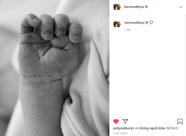 Trước đó thông qua một số hình ảnh về những món quà nhỏ xinh dành cho con, nhiều người tin rằng em bé của cặp đôi là một bé trai. Hiện tại anh Karna cùng vợ vẫn chưa chia sẻ thêm bất kỳ thông tin nào về thành viên mới của mình.