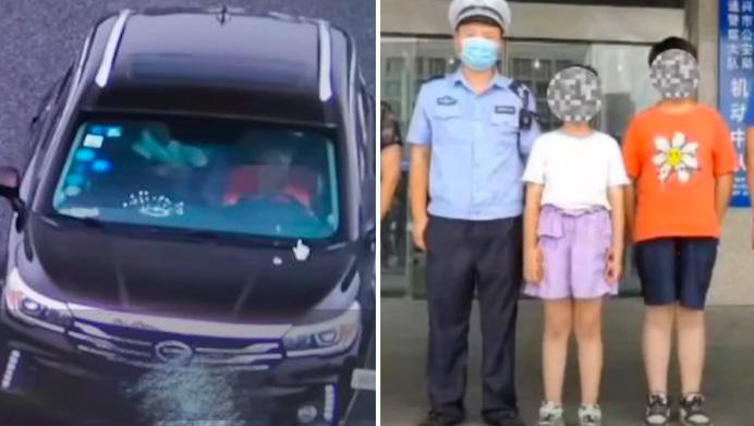 Cậu bé 12 tuổi (áo cam) xúi em gái lấy chìa khoá xe của bố rồi tự lái xe 200km với tốc độ cao.