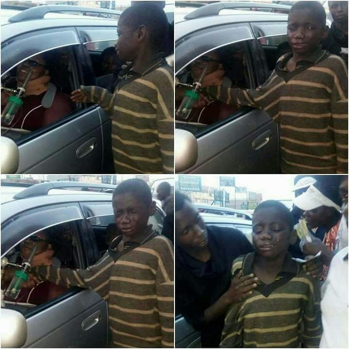 Xúc động đến rơi nước mắt, Thuo đưa cho Kamande tất cả số tiền mà cậu kiếm được trong ngày hôm đó và nắm tay cô qua cửa kính ô tô.