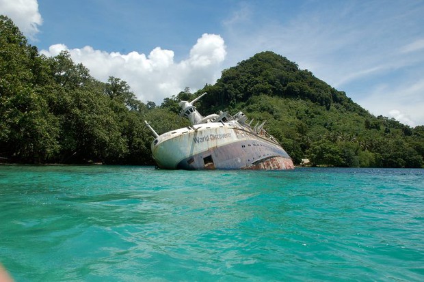 Tuy nhiên, do tình hình nội chiến phức tạp tại Quần đảo Solomon vào thời điểm đó, con tàu đã bị thiệt hại nặng nề. Sau khi nội chiến khép lại, nhiều công ty cũng đã cố gắng trục vớt con tàu nhưng đều bất lực. Kể từ đó, suốt 23 năm kể từ ngày xảy ra tai nạn, con tàu MS World Discovery này vẫn nằm nghiêng mình tại quần đảo Solomon, tạo nên khung cảnh có 1-0-2.