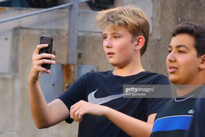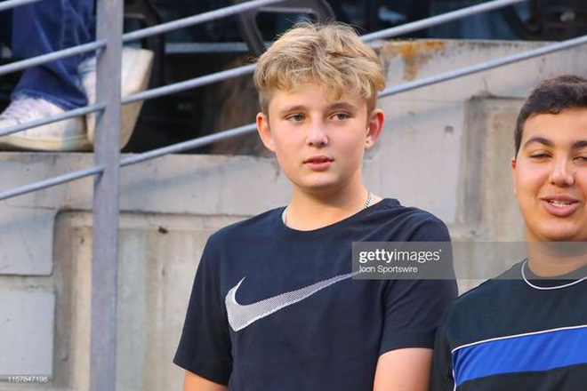 Xuất hiện trên khán đài, Barron Trump nhanh chóng lọt vào ống kinh phóng viên bởi vẻ ngoài hoàn hảo như tạc tượng. Sở hữu chiều cao nổi bật hơn 1,90m khi mới 13 tuổi, cậu út nhà ông Trump điển trai trong mái tóc mới làm xoăn và cắt ngắn thay vì mái tóc thẳng như mọi lần.