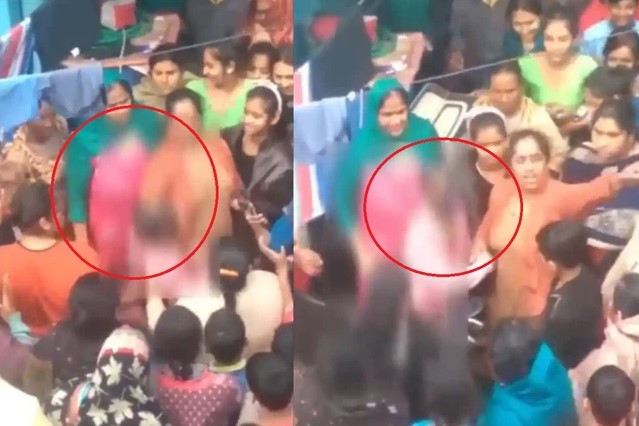 Người phụ nữ 20 tuổi bị hiếp dâm tập thể, cạo đầu, đeo nhiều đôi dép lên cổ, bôi đen mặt và diễu phố ở khu vực Kasturba Nagar, Delhi.