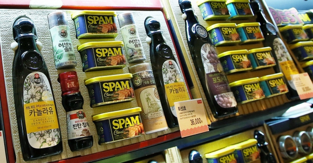 Không giống như ở một số nước phương Tây, nơi spam không được coi là một mặt hàng quà tặng, người Hàn Quốc rất ưa chuộng món ăn này. Được phát minh bởi Hormel Foods vào năm 1937, spam có mặt lần đầu tại Hàn Quốc khi nó xuất hiện trong khẩu phần ăn của những người lính thuộc quân đội Hoa Kỳ.
