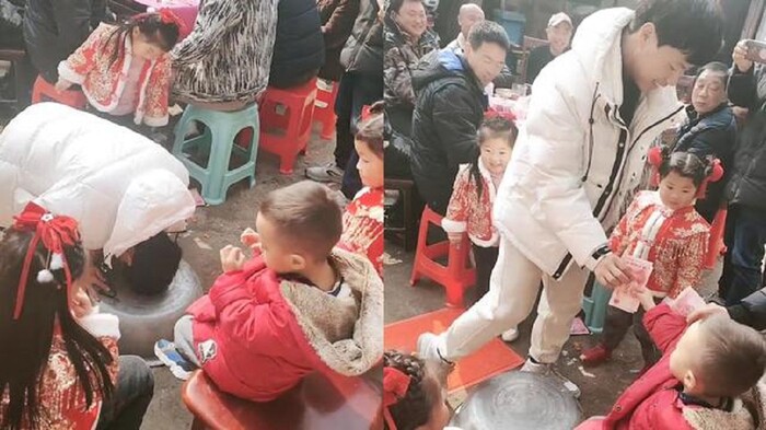 Vào ngày 30/1, đoạn clip ghi lại cảnh người chú 3 tuổi ở thành phố Túc Châu (tỉnh An Huy, Trung Quốc) đưa phong bao lì xì đỏ cho người cháu 18 tuổi đã lan truyền mạnh mẽ trên mạng xã hội.