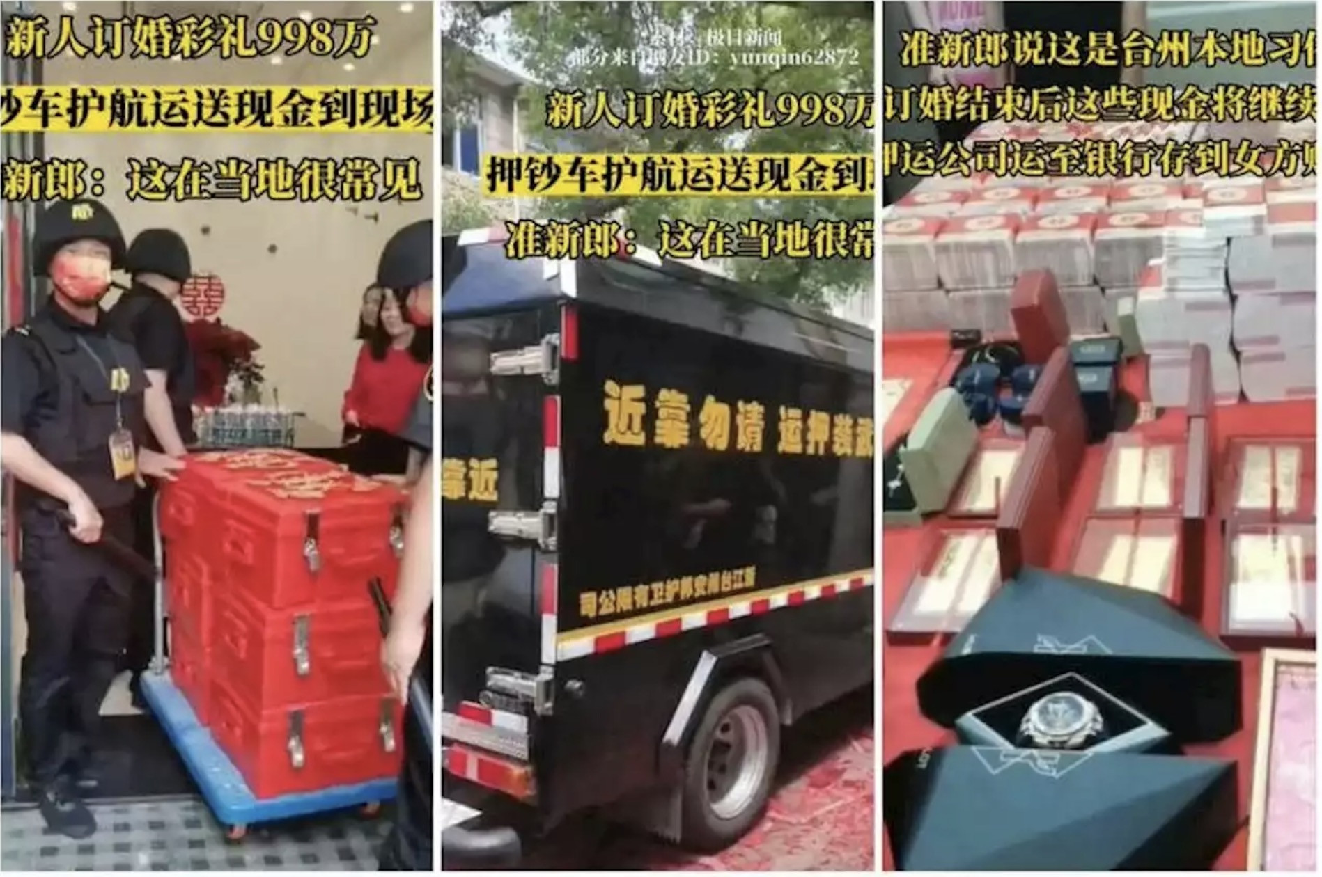 Số tiền mặt khổng lồ được nhân viên một công ty hộ tống chuyên nghiệp áp tải đến địa điểm đính hôn, rồi sau đó được chuyển tới ngân hàng để gửi vào tài khoản vợ chưa cưới của Yan.