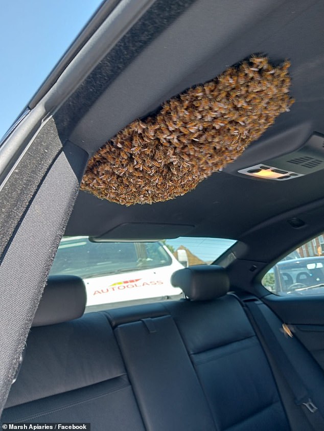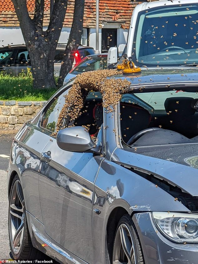 Người ta cho rằng những con côn trùng này đang tìm kiếm một ngôi nhà mới do chiếc tổ hiện tại đã quá chật chội và chúng đã lựa chọn chiếc BMW 2 Series này. Các bức ảnh được chụp lại cho thấy chiếc xe đậu ở Lydd, Kent đã bị đàn ong 'chiếm đoạt' một cách đáng sợ.
