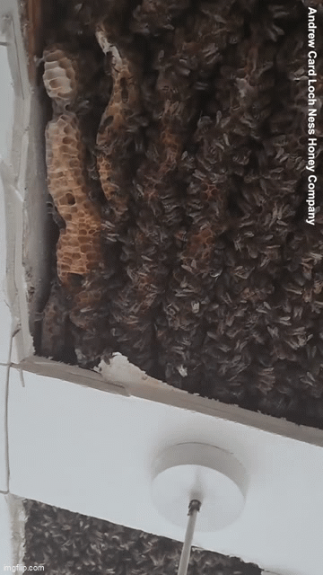 Ngay khi nhận được cuộc gọi cầu cứu, các nhân viên tới từ Công ty Mật ong Loch Ness đã có mặt và phát hiện ra tới 180.000 con ong đã làm tổ trên trần nhà của gia đình này. Họ cho rằng bầy ong đã ở đó vài năm.