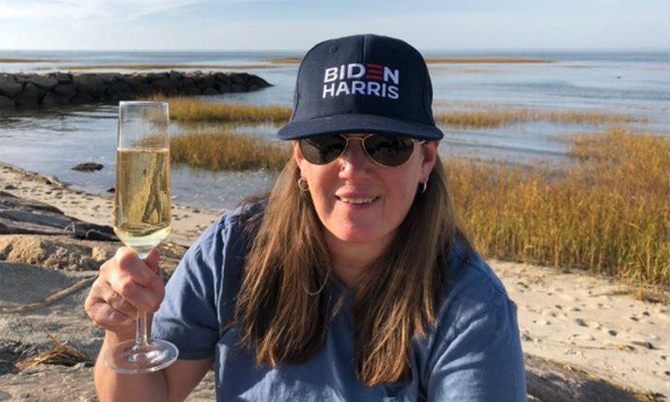 Cháu gái của Tổng thống Trump chia sẻ lên Twitter bức ảnh bà đang ngồi trên bãi biển, đầu đội chiếc mũ Biden-Harris, tay cầm một ly champagne sau khi các hãng thông tấn tuyên bố Joe Biden giành chiến thắng trong cuộc bầu cử 2020.