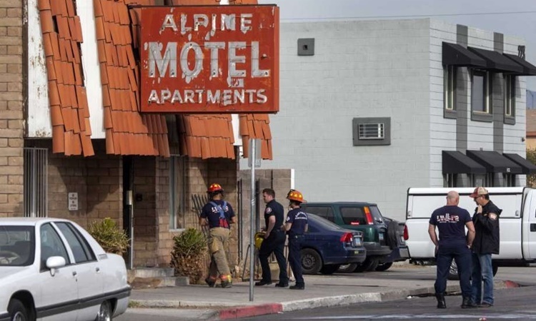 Tòa chung cư Alpine Motel nằm trên đường Ogden và đại lộ Stewart bốc cháy vào khoảng 4h15, Timothy Szymanski, đại diện Sở Cứu hỏa và Cứu hộ Las Vegas cho biết trong một cuộc họp báo. Khi lính cứu hỏa tới hiện trường, nhiều người đang treo mình bên cửa sổ ở tầng hai tòa nhà và một số đã nhảy xuống đất, trong đó có một phụ nữ mang thai. Người phụ nữ này hiện bị thương nặng.