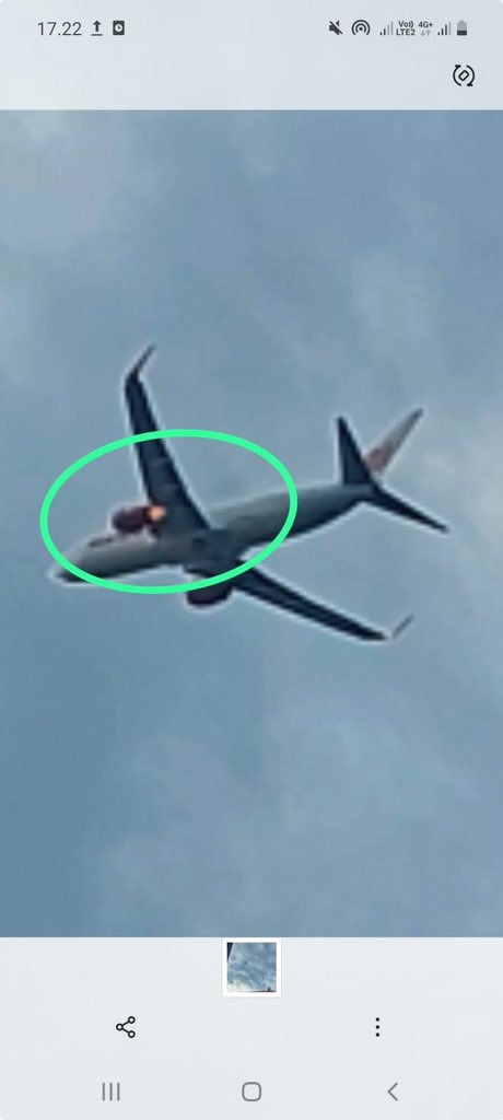 Một chiếc máy báy của hãng hàng không giá rẻ Lion Air chặng Jakarta-Palembang đã phải quay trở lại sân bay Jakarta sau khi cất cánh hơn 30 phút. Từ những bức ảnh chưa được xác minh có thể thấy nguyên nhân có thể bắt nguồn từ một bên động cơ đã bốc cháy phía bên trái máy bay.