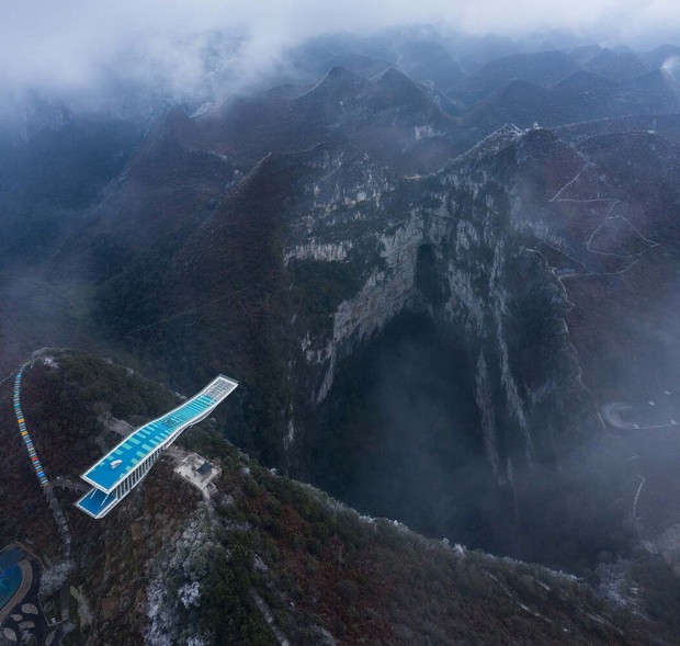 China Daily viết, Cloud Sea-Skyship nằm trên sườn núi ở độ cao khoảng 1.450 mét và trải dài trên miệng của hố sụt có độ sâu thẳng đứng là 613 mét.