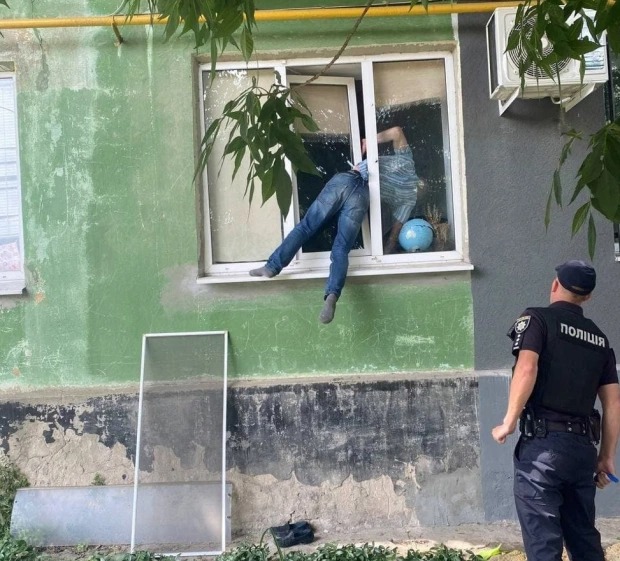 Mới đây, cảnh sát thành phố Kherson, miền Nam Ukraine, đã công bố một số hình ảnh kèm câu chuyện hy hữu xảy ra tại địa phương này. Một nam thanh niên suýt chết ở tư thế "dở khóc dở cười" khi cố tình đột nhập vào nhà của người yêu cũ với lý do.. đòi làm "chuyện ấy".