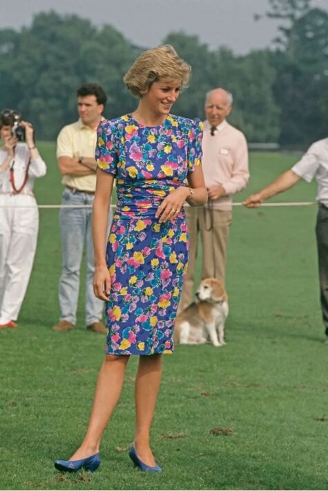 Mẫu váy đến từ thương hiệu Belville Sassoon, do nhà thiết kế David Sassoon tạo nên, từng là một phần không thể thiếu trong tủ đồ công việc của Vương phi Diana. Bà từng mặc thiết kế này trong nhiều sự kiện quan trọng, đặc biệt là các chuyến thăm bệnh viện và hoạt động từ thiện, nơi bà thể hiện trọn vẹn sự dịu dàng, gần gũi với mọi người. Thiết kế nổi bật với cầu vai phồng, cổ tròn thanh lịch và phần eo nhún nhẹ, một phom dáng đặc trưng của những năm 1980.