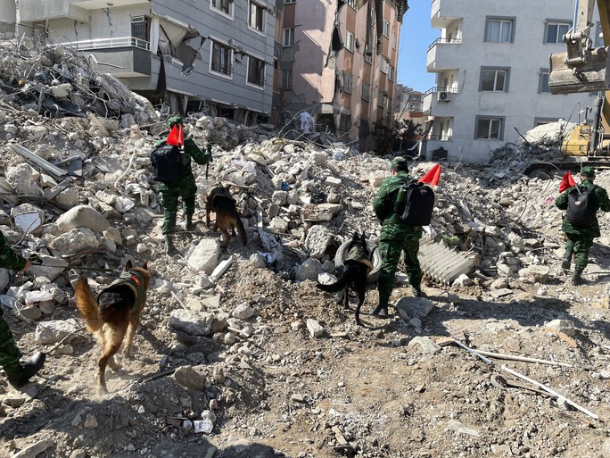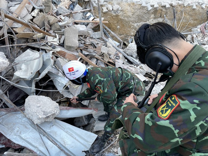Ngay sau khi đến tỉnh Hatay, ngày 14-2, Tổ trinh sát số 1 của Đội Công binh cứu sập và Đội chó nghiệp vụ bắt đầu hỗ trợ tìm kiếm cứu nạn tại khu vực đường Rustem Tumer Pasa, huyện Antakya.