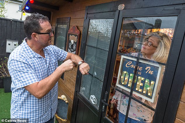 Jayne Tapper, 48 tuổi, một y tá ở Newton Abbot, Devon, đã quyết định xây dựng một quán rượu của riêng nhà mình ở sau vườn mang tên The Doghouse Inn để giữ chân chồng - Paul Tapper, 53 tuổi, không đi đến quán rượu quanh khu nhà.