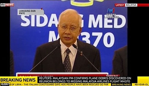 Trong buổi họp báo công bố này, ông Najiab chia sẻ:"Hôm nay là tròn 515 ngày kể từ khi xảy ra vụ mất tích, với sư tiếc thương vô hạn, tôi xin công bố rằng các mảnh vỡ dạt lên đảo Reunion (đảo thuộc lãnh thổ của Pháp nằm tại phía tây Ấn Độ Dương - PV) thực sự là một phần của MH370.