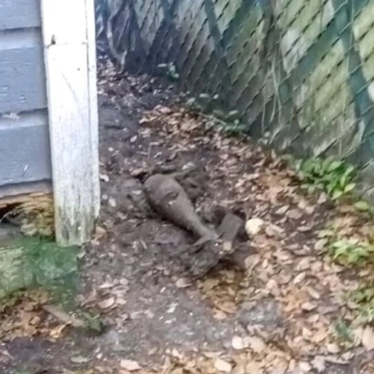 Tiến lại gần để kiểm tra, Matthew chợt nhận ra đồ vật này có hình thuôn dài, có độ dài khoảng 30 cm và nặng khoảng 4,5 kg. Đây nhiều khả năng là một quả bom chưa được kích hoạt còn sót lại từ thời chiến tranh do bị chôn vùi nhiều năm dưới lòng đất, có khả năng sẽ gây thiệt hại kinh hoàng nếu vô tình bị kích nổ.