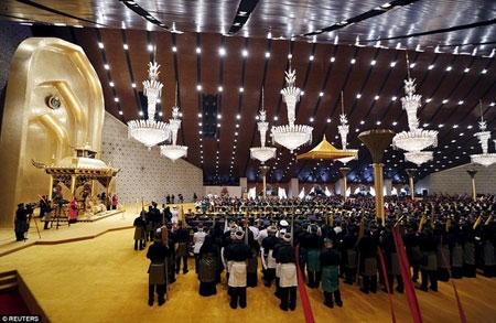 Mặc dù lễ cưới đã bắt đầu từ ngày 5/4 vừa qua thế nhưng sự kiện vào ngày hôm nay, Chủ nhật, mới đánh dấu cao trào của hơn một tuần lễ tổ chức tiệc mừng ở vương quốc nhỏ bé nhưng vô cùng giàu có Brunei. |