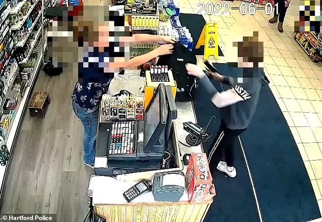 Đoạn phim cho thấy cậu bé 12 tuổi dáng nhỏ gầy bình tĩnh chờ xếp hàng ở thị trấn Hartford, tay giấu trong ba lô khi một khách hàng đứng trước trả tiền xăng.