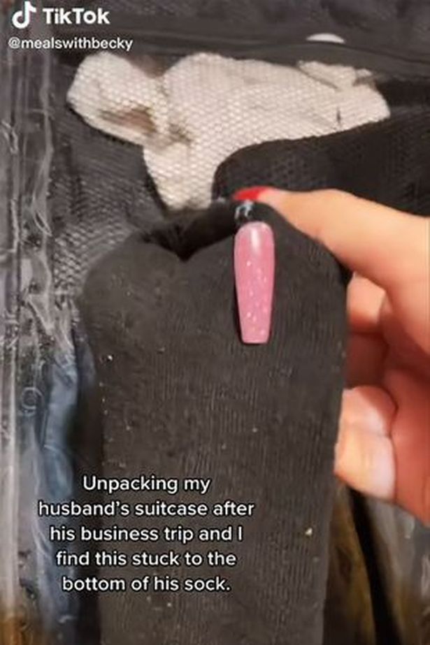 Trong đoạn video, Becky cầm camera hướng về chiếc tất màu đen có dính một chiếc móng giả màu hồng mà cô khẳng định không phải của mình.