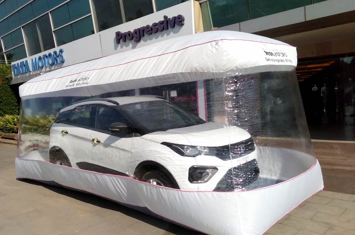 Hình ảnh những chiếc ô tô mới của Tata được đặt vào trong một bong bóng khổng lồ, mang tên Safety Bubble khi giao cho khách hàng thu hút sự chú ý của cộng đồng mạng.