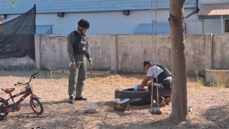 Quan sát kỹ, anh Jittakorn giật mình phát hiện đó là một thiết bị nổ tự chế. Nó được quấn chặt bằng băng dính đen, có kích thước bằng một quả bóng tennis.