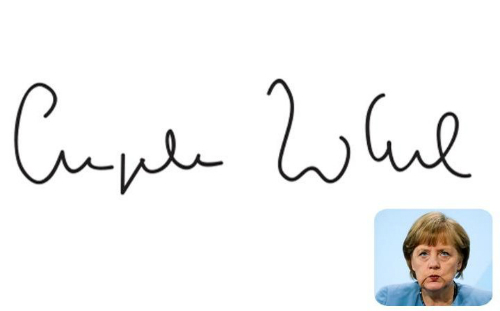 Chữ ký của một nữ chính trị gia khác, Thủ tướng Đức Angela Merkel, thì được cho là rất thú vị, bởi chữ M được bà viết giống như chữ W.