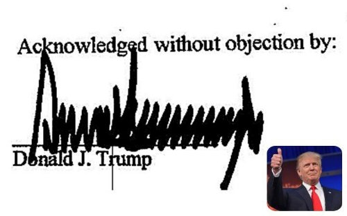 Telegraph nhận xét chữ ký của ông Donald Trump rất lạ. Chữ ký tạo thành một loạt mũi nhọn và kéo dài, làm cho tên của ông trùm bất động sản ngỡ như phải là "Donald Trummmmpb".