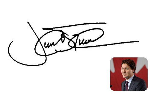 Trong khi đó, chữ ký của Thủ tướng Canada Justin Trudeau lại cho thấy ông dường như tự đặt ra cho mình giới hạn.