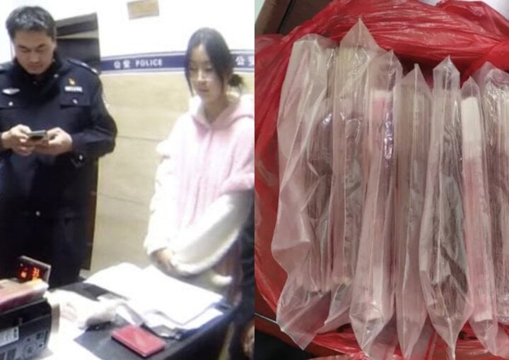 Trước sự chứng kiến của hai cô gái, cảnh sát đếm các bó tiền giấy có mệnh giá 50 và 100 nhân dân tệ và xác định tổng cộng chiếc túi chứa tới 110 nghìn nhân dân tệ (373 triệu đồng).