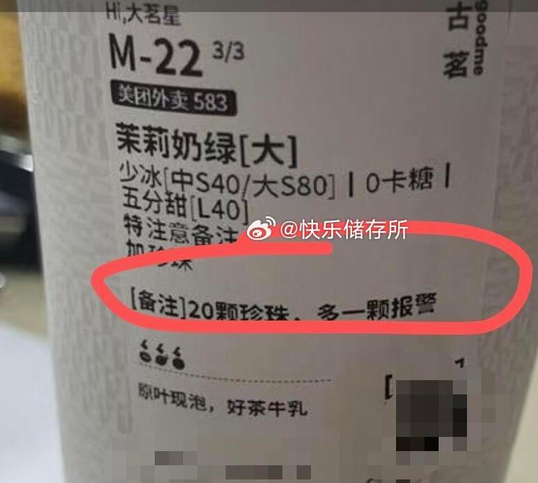 Mới đây, một câu chuyện dở khóc dở cười đã xảy ra tại Trung Quốc khi một khách hàng đặt trà sữa giao tận nhà kèm theo yêu cầu kỳ lạ. Theo đó, vị khách này đã ghi chú rõ ràng trong đơn hàng rằng ly trà sữa matcha size lớn, ít đá, ngọt vừa phải của mình chỉ được có đúng 20 viên trân châu. Điều đáng nói là người này còn dọa sẽ "báo cảnh sát" nếu phát hiện có bất kỳ viên trân châu nào dư ra.