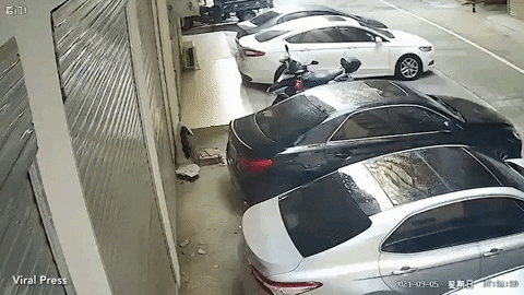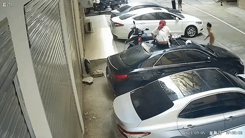 Người dân đi đường ở thành phố Đài Bắc, Trung Quốc đã có một phen thót tim khi đột nhiên, một người phụ nữ từ trên trời rơi xuống theo đúng nghĩa đen, và "hạ cánh" đánh rầm xuống một chiếc sedan màu đen ở bãi gửi xe.