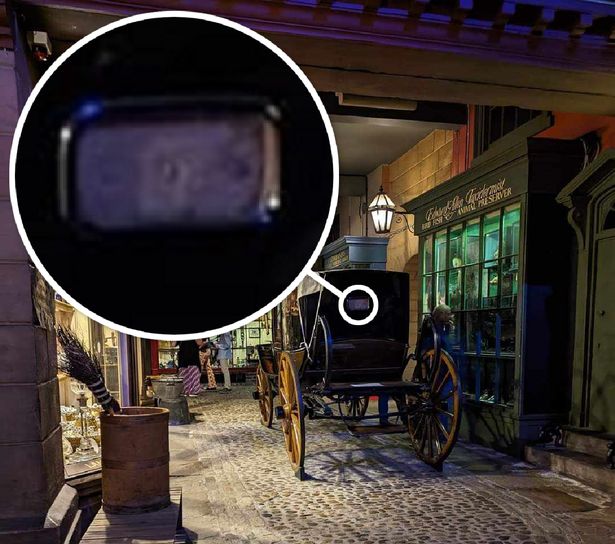 Trong bức ảnh do Callow chụp có thể nhìn thấy hình ảnh giống một khuôn mặt ở cửa kính phía sau một chiếc xe kéo cũ, với thứ giống hai mắt và mũ.