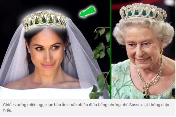 Mới đây, thêm một câu chuyện đặc biệt khác liên quan đến drama về chiếc vương miện của Meghan Markle được sử dụng trong ngày cưới cũng có thông tin mới và nhận được sự quan tâm của dư luận. Trước đây đã có nhiều tin đồn xung quanh câu chuyện này trên truyền thông Anh. Theo đó, Meghan đã để mắt tới một chiếc vương miện ngọc lục bảo lấp lánh nhưng Nữ hoàng Anh đã không đồng ý và lựa chọn cho Meghan một chiếc vương miện khác cho hôn lễ hoàng gia năm 2018. Nguyên nhân được cho là xuất phát từ nguồn gốc không rõ ràng của chiếc vương miện.