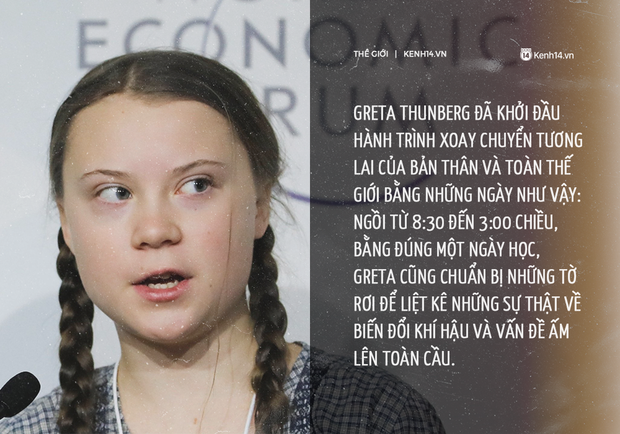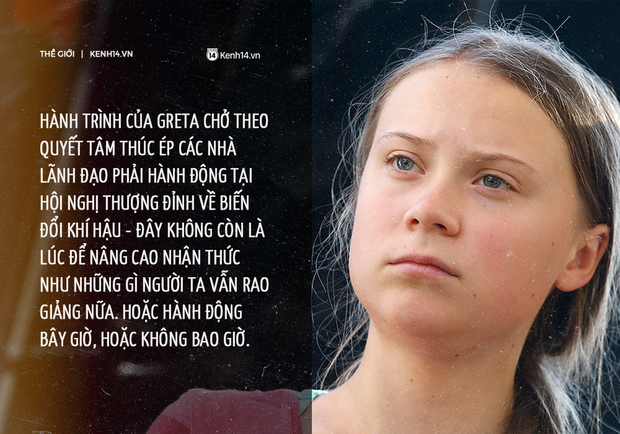 Nhưng như vậy đã đủ chưa? Có đủ để nhiệt độ thế giới không tăng với mức đáng báo động, diễn biến thời tiết không phức tạp hơn và hiệu ứng nhà kính ngày càng tăng không? Không đủ, Greta hiểu rằng cô không thể ngồi chờ những lời nói suông của các chính khách để thay đổi thế giới.