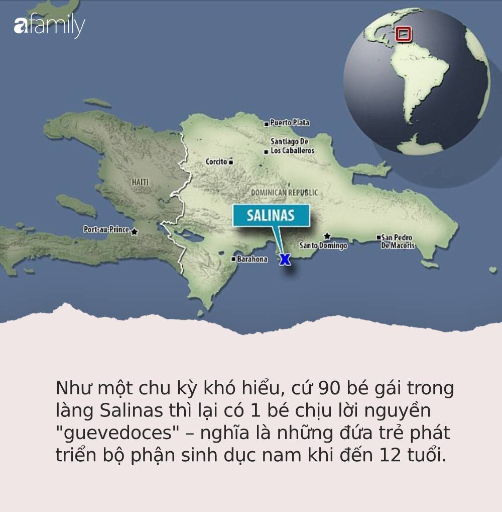 Như một chu kỳ khó hiểu, cứ 90 bé gái trong làng Salinas thì lại có 1 bé chịu lời nguyền "guevedoces" – nghĩa là những đứa trẻ phát triển bộ phận sinh dục nam khi đến 12 tuổi.