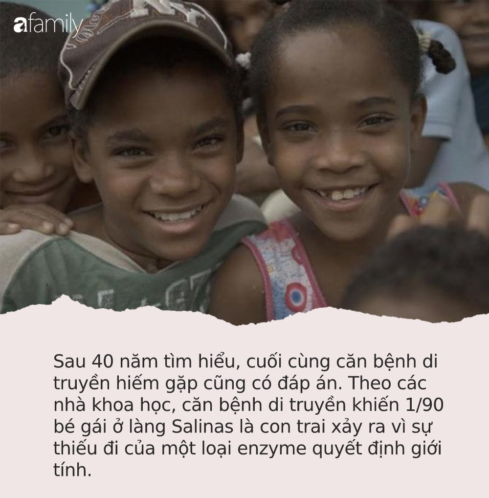 Sau 40 năm tìm hiểu, cuối cùng căn bệnh di truyền hiếm gặp cũng có đáp án. Theo các nhà khoa học, căn bệnh di truyền khiến 1/90 bé gái ở làng Salinas là con trai xảy ra vì sự thiếu đi của một loại enzyme quyết định giới tính.