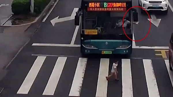 Tuy nhiên, bé trai bất ngờ lao ra giữa đường giữa dòng phương tiện đang di chuyển. Một tài xế xe buýt đã phát hiện ra cậu bé và dừng xe ngay lập tức. Sau đó anh ta vẫy tay ra hiệu để cảnh báo chiếc xe bên cạnh dừng lại.