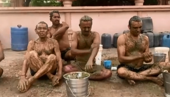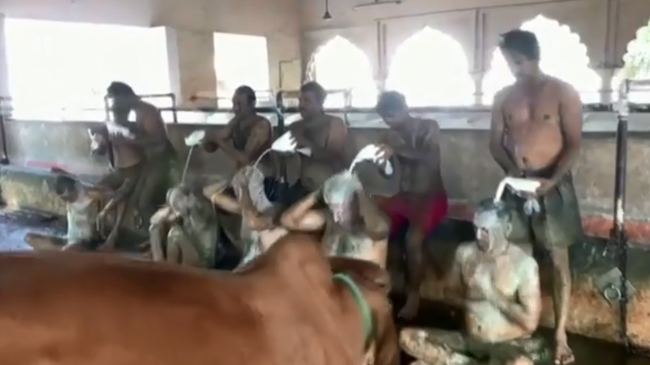 Người dân Ấn Độ tắm phân bò để điều trị Covid-19 |